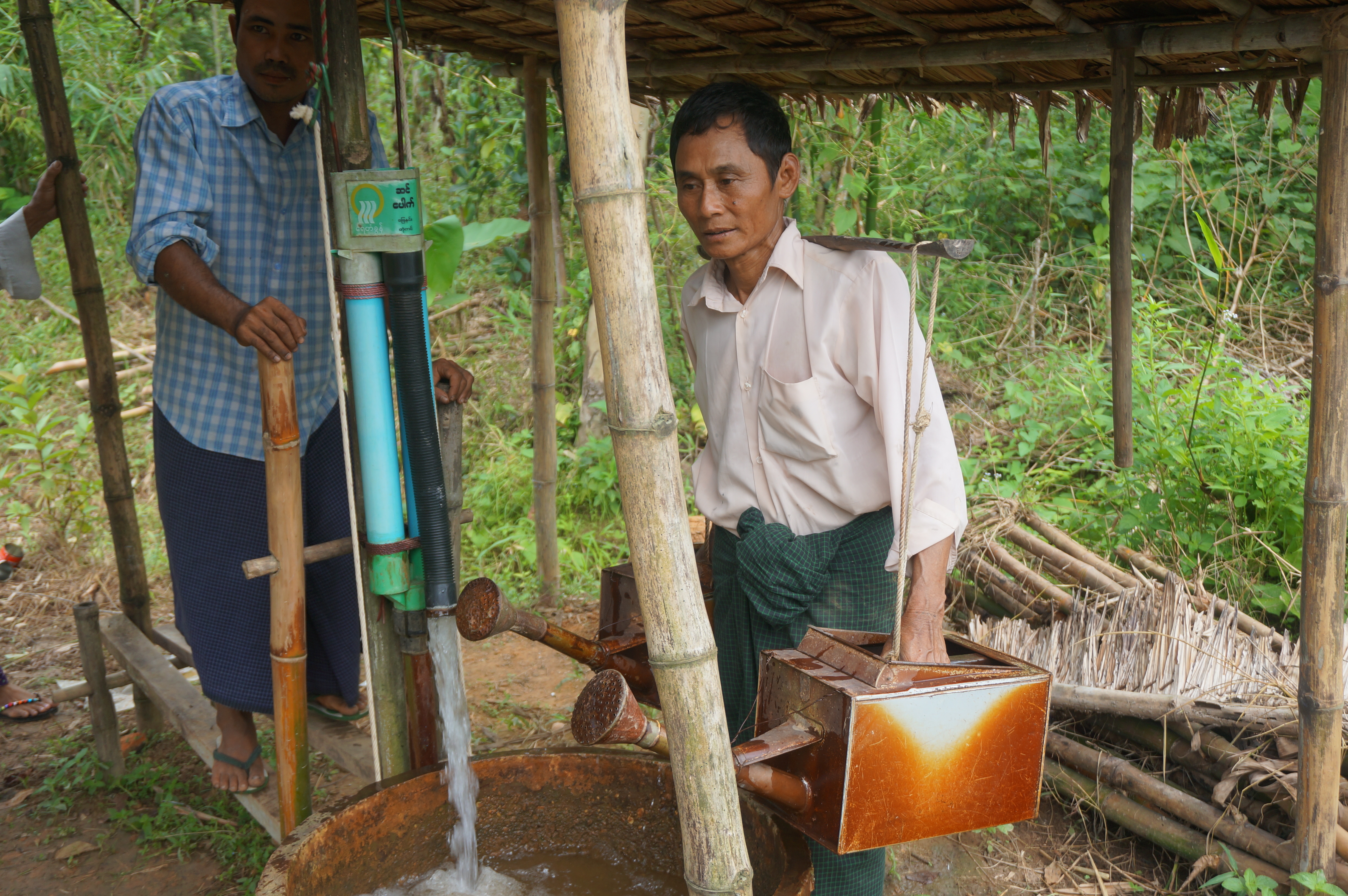 Photo: A traditional method of watering a field (by watering can) made easier through one of the Proximity Designs treadle pumps.