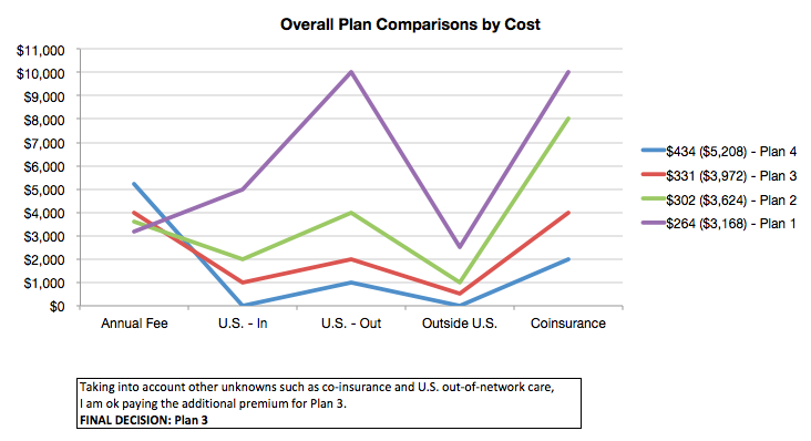 Xplorer Premium actually had four plan options. If you’re interested in my thought-process, I’ve included some of my analysis below. It was interesting thinking through the value one should put on the concept of “feeling secure” (despite the probabilities of occurrence). Fo reference, I went with Plan 3.