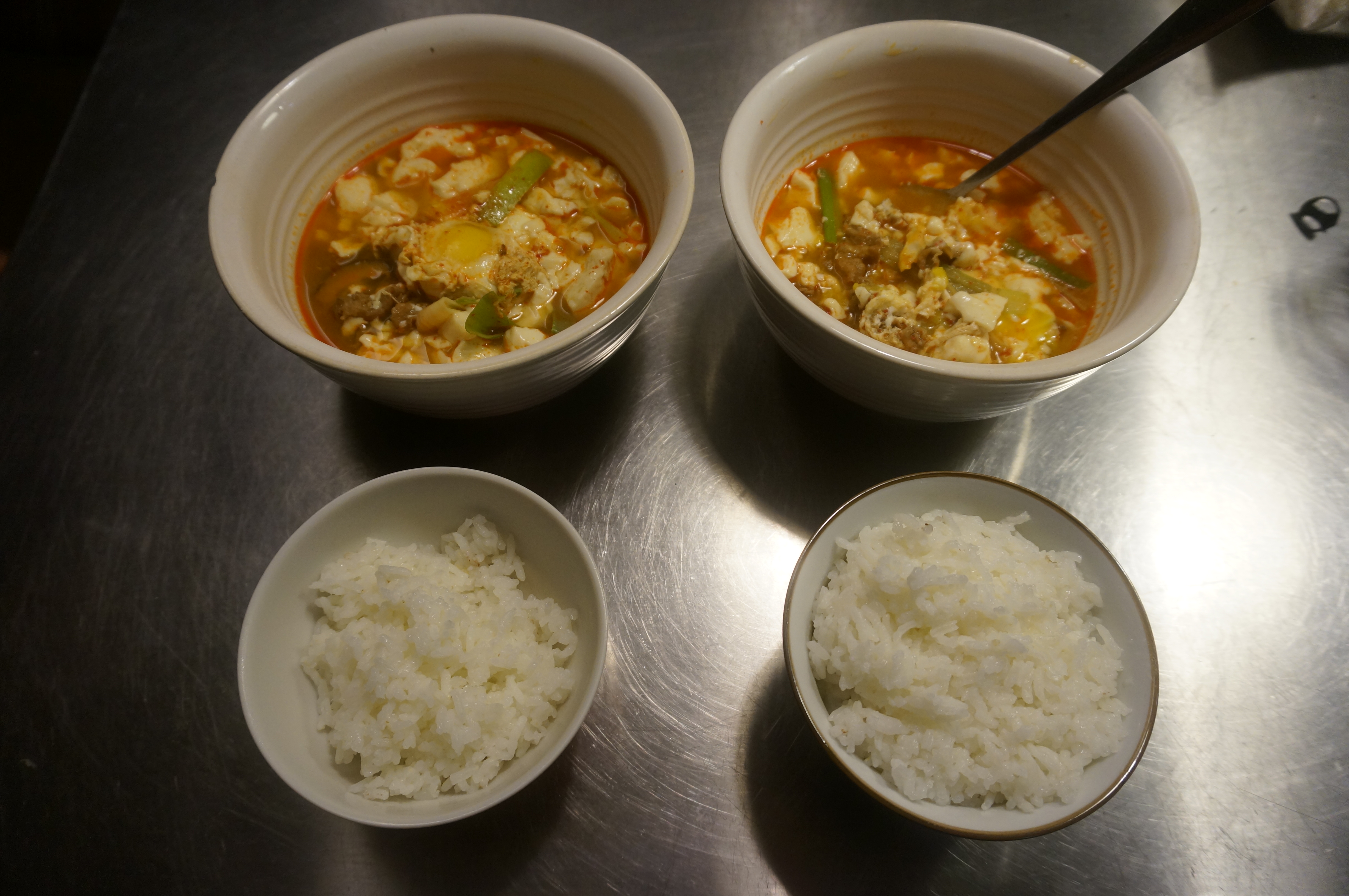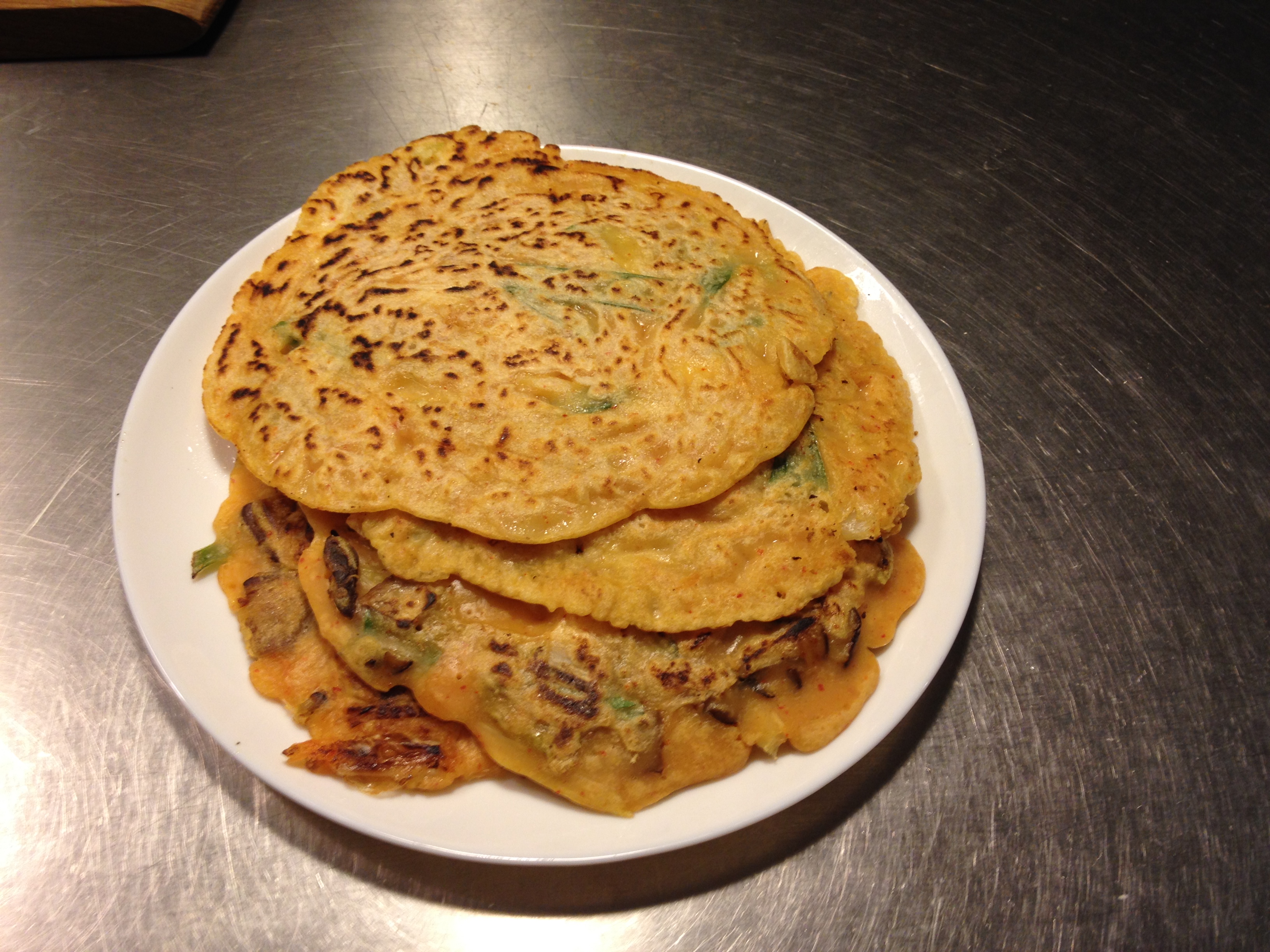 The first two pictures are of Korean tofu stew (sundubu) and the second two of are Korean-style pancakes.