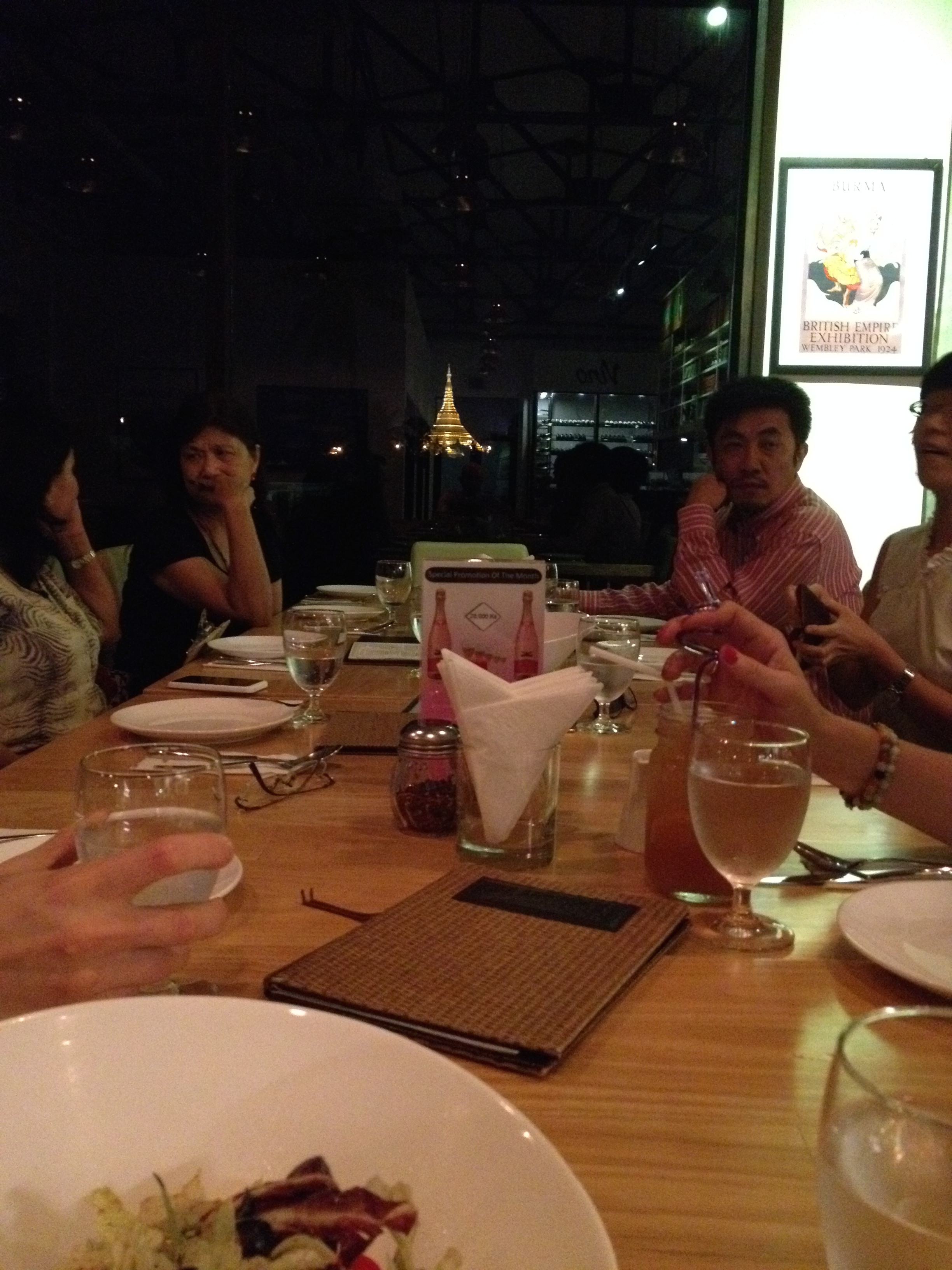 Here’s a really cool view of Shwedagon Pagoda that I had while eating at a pizza restaurant one night: